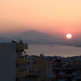 Alex est un genre de coordonnateur de projet ici. Il est originaire du Vénézuela, a vécu une partie de sa vie aux États-Unis et s'est établit en Grèce avec sa douce. C'est lui qui nous a tous invités chez lui pour souper. Jolie maison et par dessus tout, jolie vue sur la mer! Les couchers de soleil sont impressionnants. Comme un gros ballon tout rond, le soleil disparaît chaque soir derrière les montagnes. Et en face de cet astre rougit par le jour, on aperçoit la lune, qui se lève derrière une autre montagne.